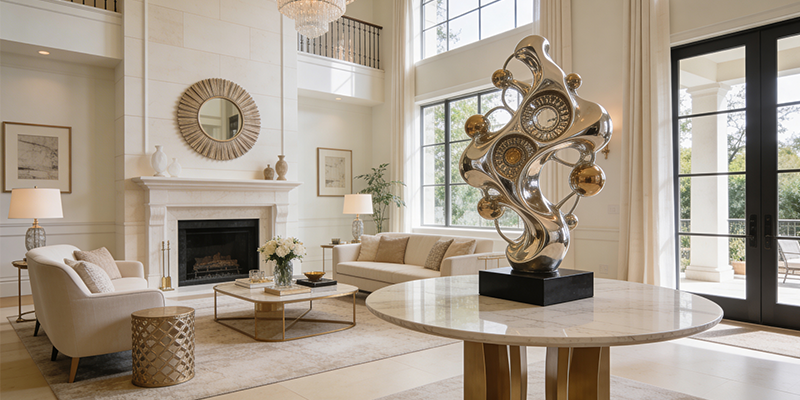 Luxury interior sculptures often draw more attention in high-end homes. These pieces may use marble, bronze, or fine metal. They give a rich and refined look to the room. Buyers who want a premium home tend to value such details.